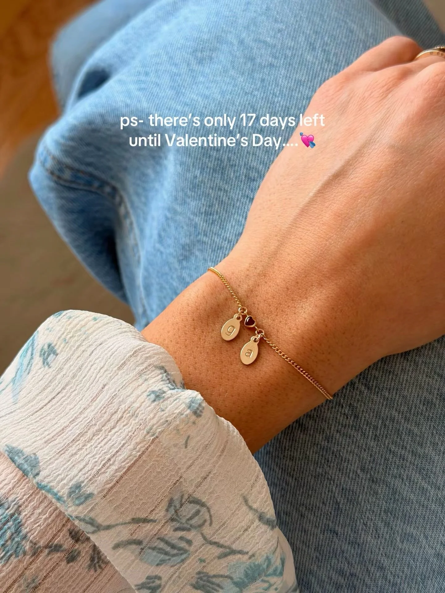 Tiny Initial Heart Birthstone Bracelet